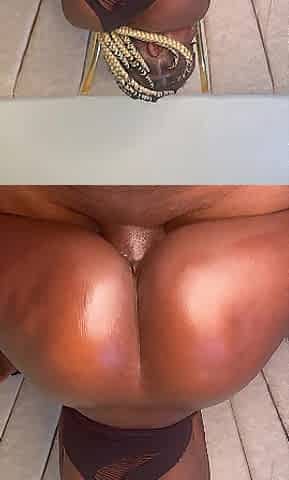 Rubbing oil over that large ebony butt in advance of tapping her booty and creampie her snatch