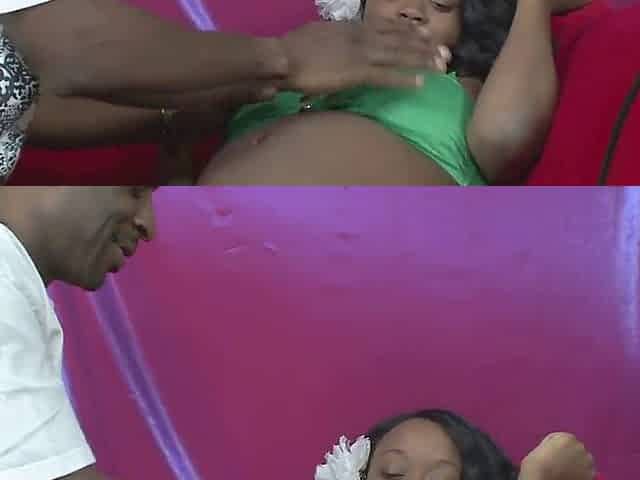 Pregnant ebony beauty enjoys a hefty black cock