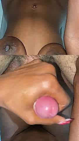 AFRO ANGEL GIVES TUGJOB WITH COCONUT OIL *LARGE BAZOOKAS*LARGE SPUNK FOUNTAIN