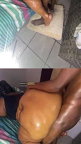 Sexyjayla254 oiling his large ebony booty previous to milking his ramrod