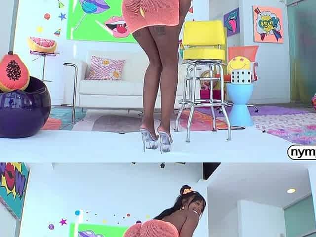 Black sweetheart with tiny booty carefully chooses pants for the 1st date