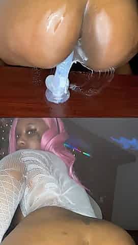 Look how this large butt Black rides/creams her fresh Sex toy then squirts Insta@pinkyybratzzz X:@kyhoex