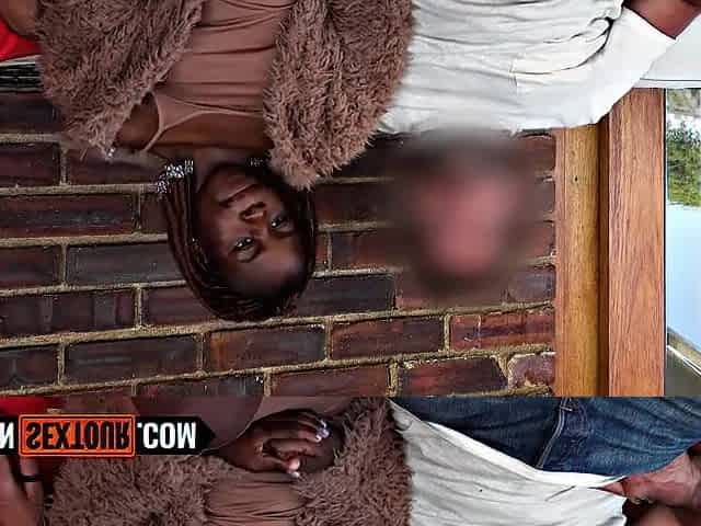 Large butt black GF gets her boyfriends large white ramrod on a porch
