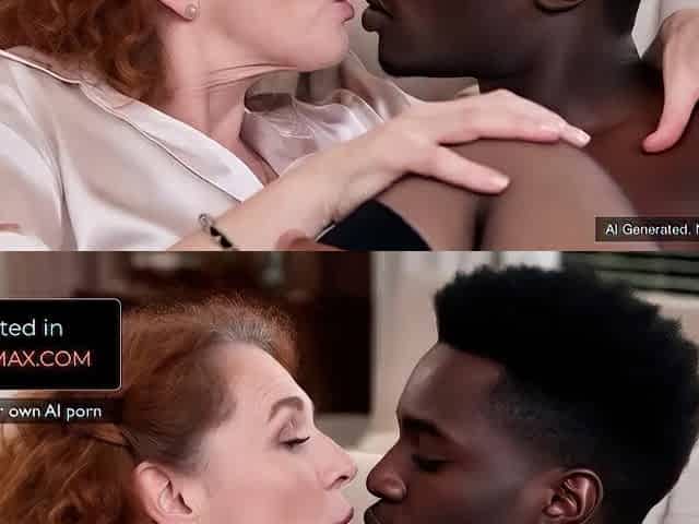 AI Gen Old red hair granny and a youthful ebony chap have sex - AI Generated Interracial GILF sex