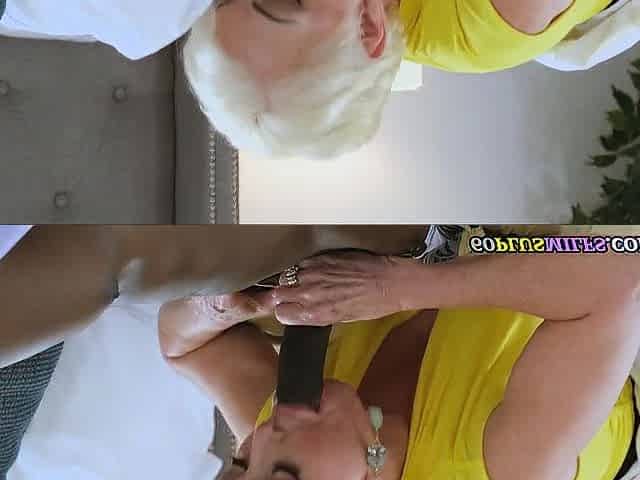 GRANNY LIKES EBONY - Aged granny deepthroats ebony jock
