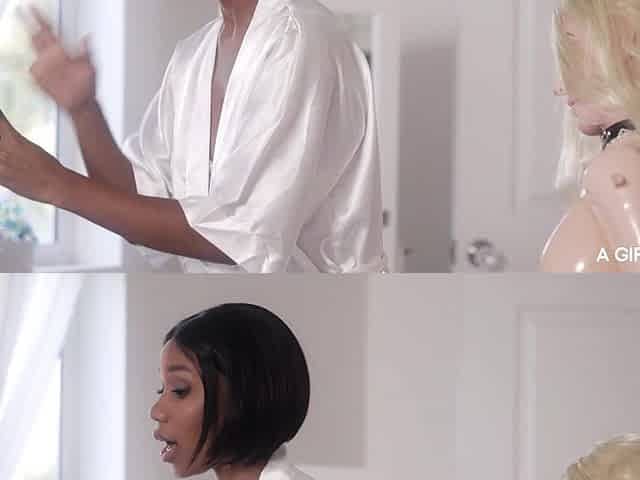 Lily Delarosa and Kendall Kay in hot interracial lesbian action
