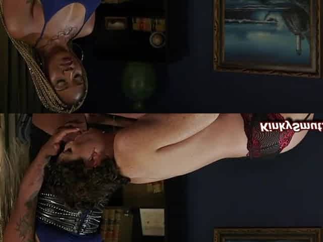 Ebony lezdom butt fucking fucks white cougar in bondage