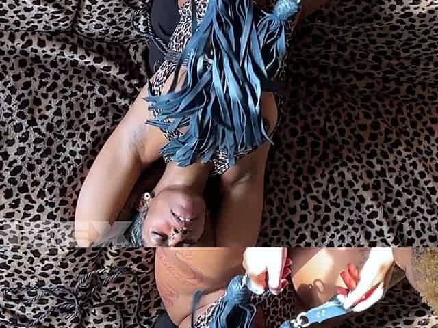 Submissive Ebony in Bondage Has to Kiss the Goddess