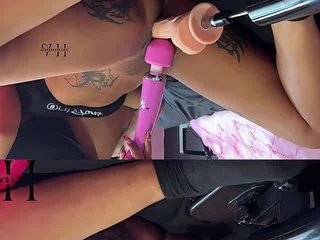 Eating her cunt during the time that this babe gets banged w/ sex machine