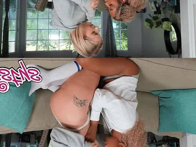 Lesbea Interracial tribbing and face sitting for youthful lesbo gals