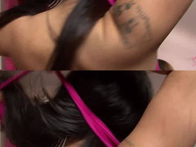 Ebony lesbian babe gets pussy licked by tattooed weird friend