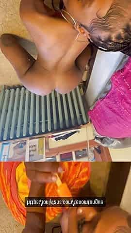 Sexy black guys with juicy tits fuck in bed with a vibrator