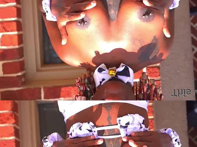 Brunette lesbian pussy licking her big tits ebony girlfriend