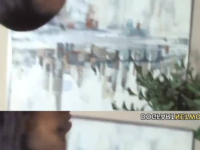 Ebony lesbian babe Ana Foxxx performs at an interview