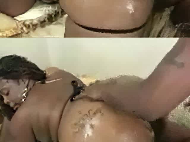 Sneaky Cheating Lesbian Stepmom Agrees to Bounce Her Big Oiled Ebony Ass on Big Strap on Dildo