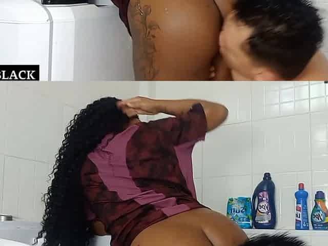 Unexpected sex in the laundry room, with different poses and cum inside the vagina.