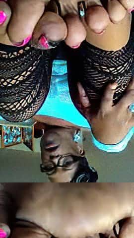 Ebony milf Amanda exposes her fuckable body and works her pink pussy