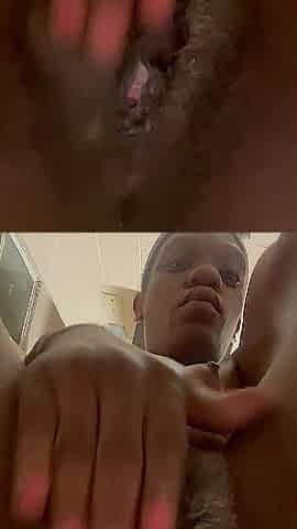 Hairy pussy ebony MILF Necie masturbates for AJ's members