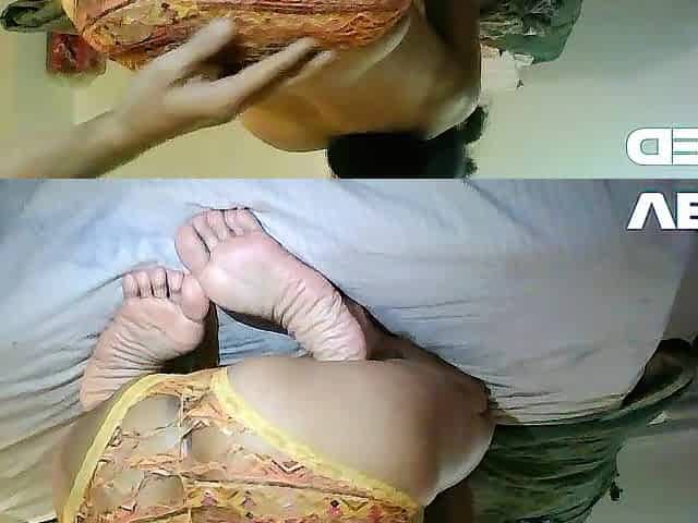 Sexy Fishnet And Licking Her Feet
