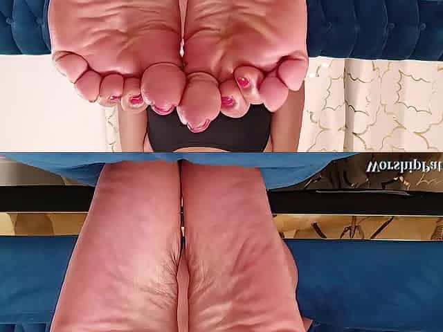 Stripped-Toed Pink Foxx’s Foot Play in Worn Slippers