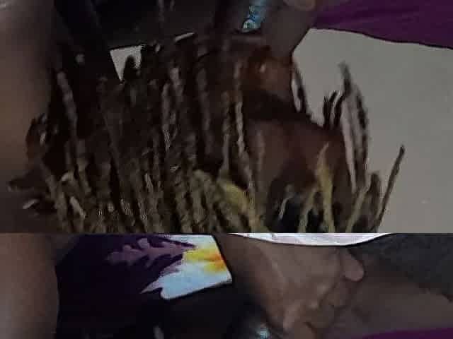 Hairy pussy ebony MILF Necie masturbates for AJ's members