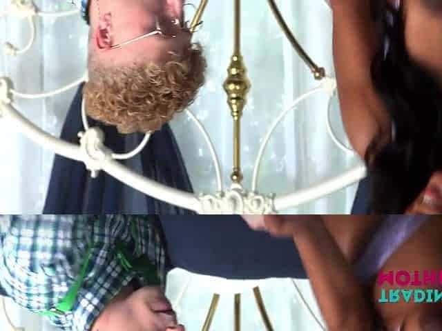 Hot Ebony and Busty MILF Get Pounded Side by Side in Bed