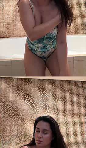 Breasty curvy Sweetheart does oily baths tease