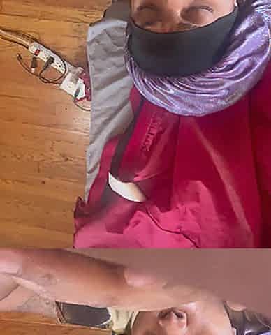 Dominant-bitch Mistresse April - Black Rose climbs the ladder upside down
