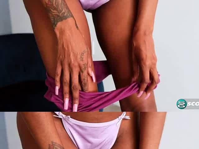 Super Sexy Whore Autumn Luvit cleans Poizon Ivy's Chocolate Twat