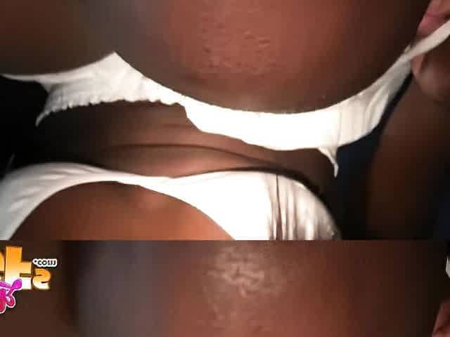 Ebony in upskirt shaking off her big round butt