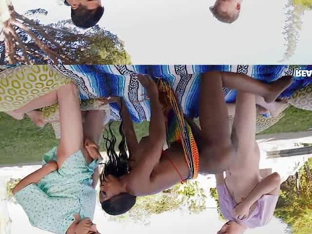 Ebony Mystique Pleasures Two Horny Young Studs In The Park