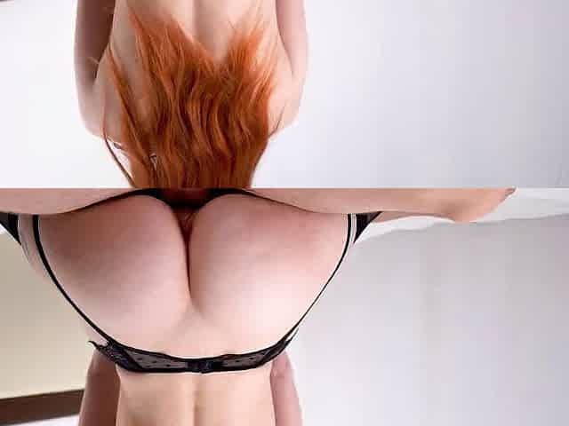 Sexy blowjob, cowgirl riding and sidefuck creampie with redhead stepsister in stokings