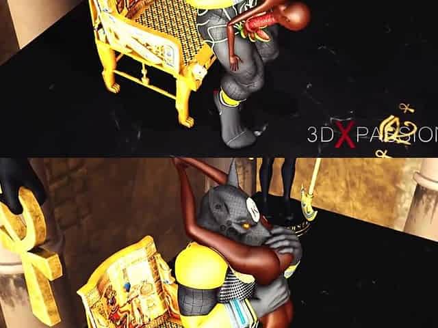 Anubis fucks a hot black girl in the temple in Ancient Egypt