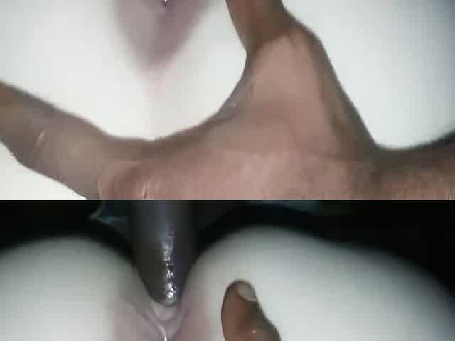 Ebony babe fingering asshole and pussy