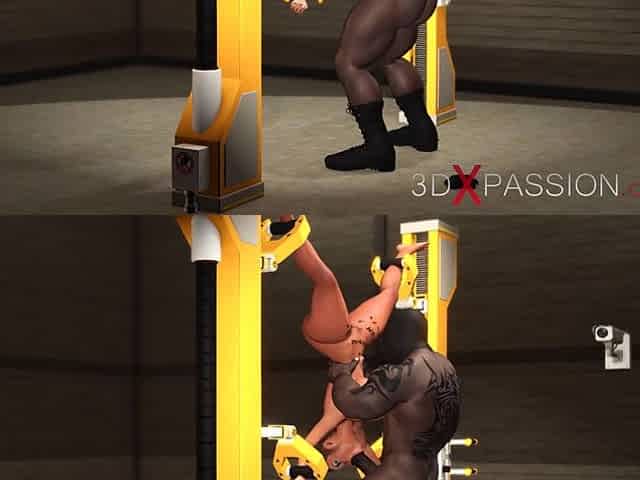 Restricted area. A sexy ebony in restraints gest fucked hard by a black big cock