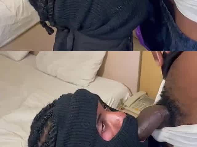 Teen ladyboy in ebony nylons gets her petite penis sucked