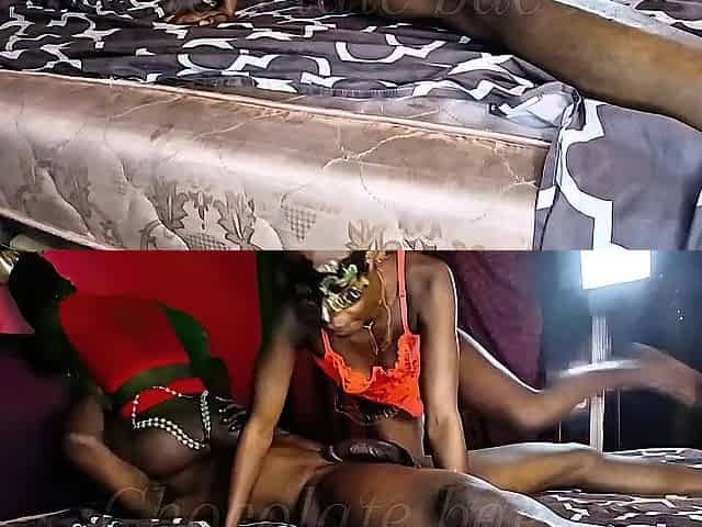 Ebony Bitch Fucks And Sucks Cock In The Same Time