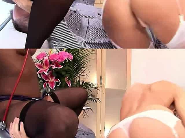 The Busty White And Ebony Nurses Visit Their Patient With A Raunchy Threesome In Mind