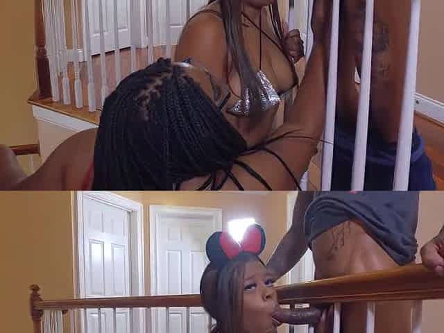 Ebony threesome: Blowjob, Doggy Cowgirl Porn