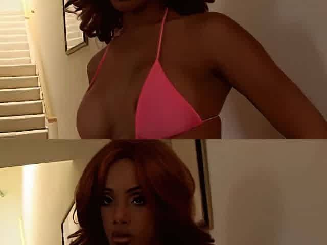 Ebony BBW Trans vs 2 Big Black Cocks