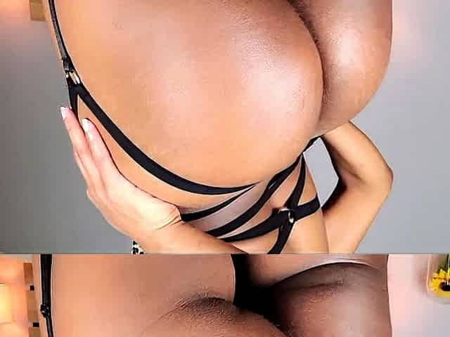 Intense masturbation from a chocolate sexy camgirl in stockings