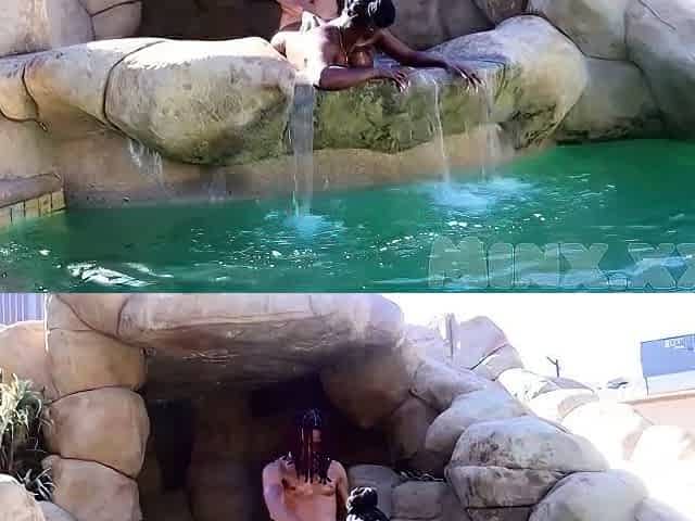 Oiled Ebony Ass Dildo Riding in Public