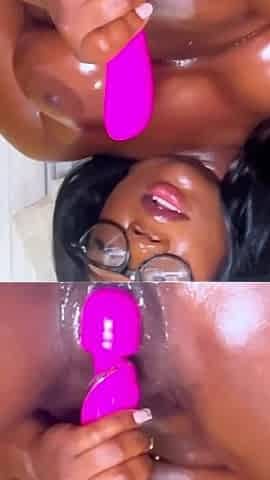 Ebony with Huge Tits Plays with Dildo on Webcam