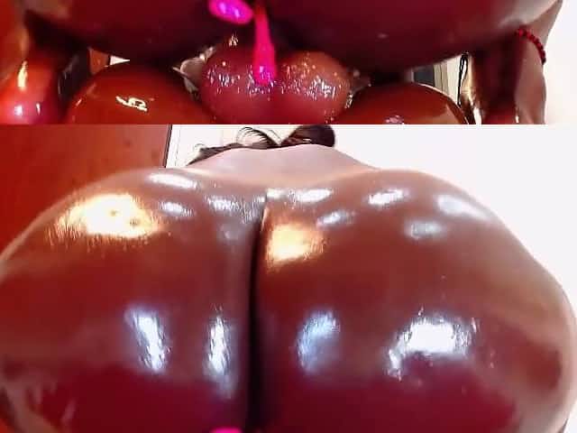 Oily ass on a big dildo