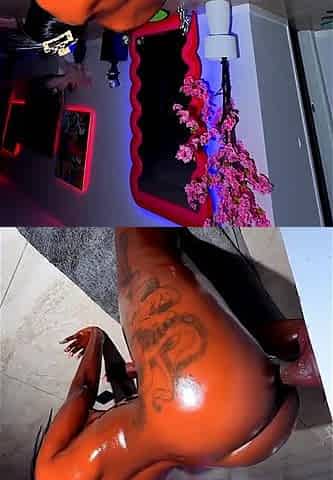 Horny Ebony TS slut analriding BBC lover