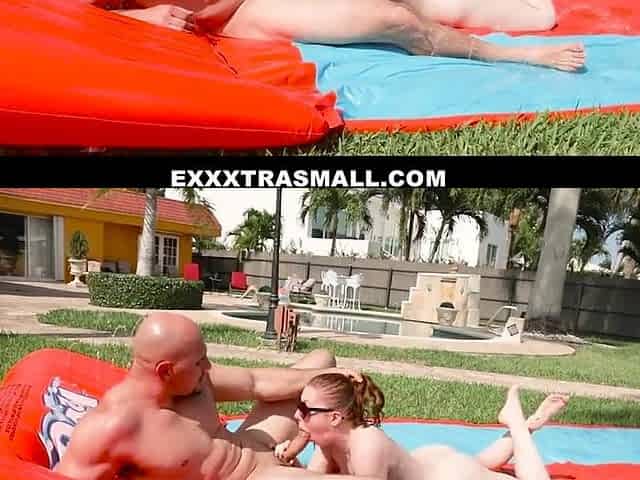 Red haired honey is sucking a emo hard knob in the backyard, in advance of getting stuffed with it