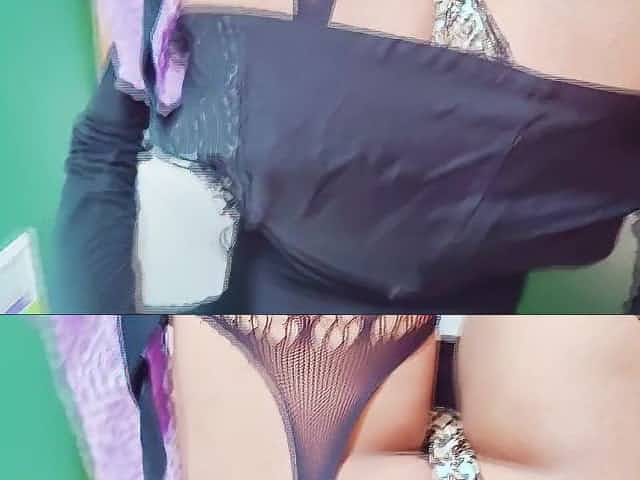 Petite Blond Rides Sex Tool in Fishnet Bodysuit