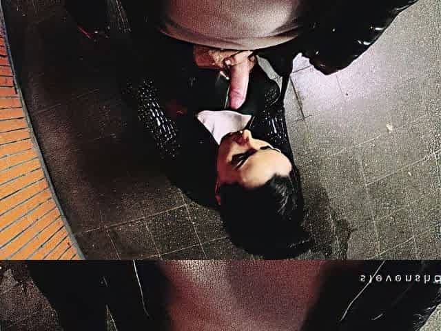Latina emo deepthroats huge cock through gloryhole