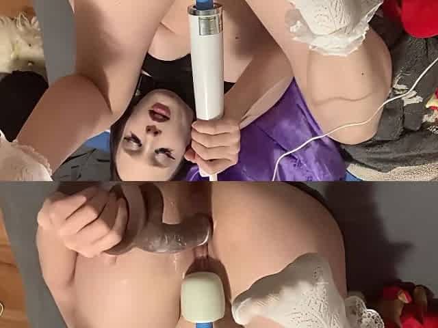 Horny emo teen in fishnet stockings rides a massive dildo, moaning loudly