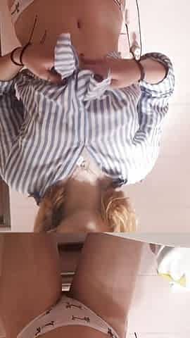 "Sexy striptease and masturbation in the shower with a wild orgasm. Close-up"